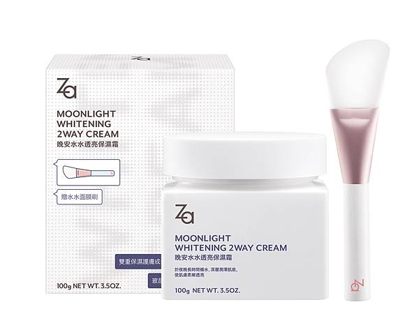 晚安~一覺醒來變水水!開架美粧領導品牌Za將於2021年1月推出「晚安水水透亮保濕霜」,一瓶兼具保濕晚霜與水洗式面膜的夜間兩用保養!當晚霜使用時,只要睡前薄塗一層,便能於夜晚長時間為肌膚補水、深層潤澤肌底,一覺醒來,養成嫩透亮美顏。作為水洗式面膜使用時,厚敷15分鐘後即可沖洗,短時間讓滋潤直達肌底。如白雪般的特殊凝霜質地,一抹柔滑綿密且不黏膩,顛覆一般晚霜厚重且易沾黏髮絲的印象,更獨家附贈水水面膜刷,零死角塗抹,保養更徹底,貼心不沾手!