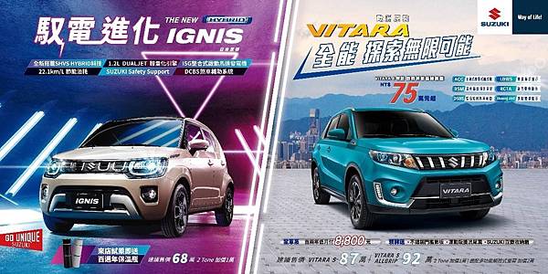 另外維持高人氣和聲量的VITARA,依舊十分暢銷!除了以小排量大動力的優異性能、同級第一的節能表現外,擁有6大安全系統:ACC主動式安全車距巡航控制、BSM車側盲點偵測、DSBS雙感知器煞車輔助、LDWS車道偏離警示、RCTA後方車側警示、Weaving alert駕駛疲勞警示,更是守護車主與家人的安全。VITARA在安全系統上的升級搭配絕美外型,和配置上的升級優化、跑格動力與優異節能,可謂是SUV界裡全能實力型的強者。