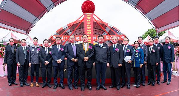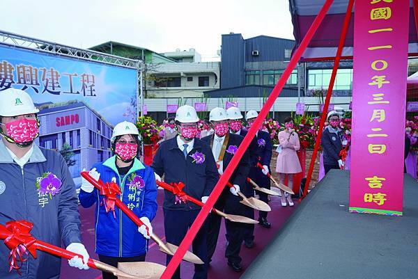 桃園市長鄭文燦(左三)與聲寶集團總裁陳盛沺(左四)與眾人共同為聲寶集團企業總部動土