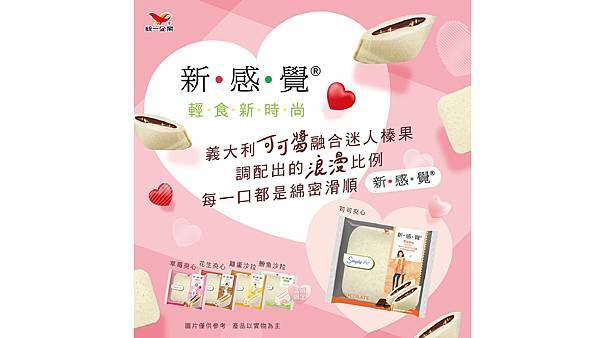 「新感覺」夾心土司系列最迷人之處,就是能讓吃完還保持「高顏值」的食用體驗,輕巧的包裝、不沾手的封邊設計,不管想吃鹹的還是甜的都有對應的選擇,隨時隨地由自己的心情做決定,除了新感覺可可夾心外,還有雞蛋沙拉、草莓夾心、花生夾心與區域限定的鮪魚沙拉,都會生活忙碌的你我,就用新感覺解決想隨時補充輕食又不用擔心吃太多,每天都能變換不同的選擇新感覺。
