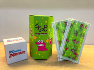 鱷魚阿山款 印有桃紅色鱷魚的綠色六角形外盒,小新迷肯定不陌生!口罩外盒以蠟筆小新最愛的巧克力餅乾做為設計靈感,百分之百復刻動畫中餅乾盒造型,口罩以綠色打底,印上六角形餅乾盒及鱷魚阿山頭像,馬上聯想到小新躡手躡腳偷吃餅乾的逗趣畫面,讓人會心一笑。
