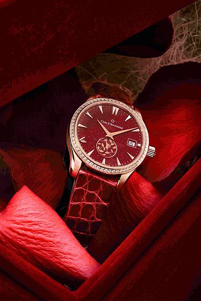 即將在母親節隆重登場的寶齊萊馬利龍AutoDate LOVE系列,設計靈感以應證「愛」為靈感泉源;透過華麗感十足的紅色灑金錶盤、優雅風格滿溢的藍綠色錶盤和潤澤瑰白的珍珠貝母錶盤;豐富的材質和顏色的設計理念,呼應母親對我們的寵愛、疼愛、關愛,寶齊萊馬利龍AutoDate LOVE系列,運用豐富的材質和顏色的靈感神韻,賦予腕錶令人醉心炫目,且奢華的無限魅力。玫瑰金型號的錶圈鑲嵌62顆閃爍美鑽(0.65克拉)與色彩鮮明的紅色錶盤相得益彰,也寓意著母子間親情至臻的天倫之景。藍綠色型號氣質優雅雋永, 寓意愛與關懷,面盤六點鐘位置,小秒盤透過漆藝的華麗表態母子之間的情感連結,如同枝葉相連般生生不息; 顏色濃厚的錶盤在不同光線下折射出耀目光芒, 搭配同色系鱷魚皮錶帶,倍顯寶齊萊馬利龍AutoDate LOVE系列的獨家魅力。