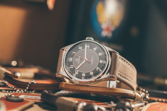 瑞士TITONI Heritage傳承系列,完美表態了50 年代戰後軍錶風格的思維轉變,有別於一般軍錶的粗獷系印象,當年傳承系列錶殼線條圓潤,同時透過細膩打磨後,產生的高光亮澤,搭配美式軍錶制式的寬齒比錶冠,展現出豪邁與紳雅完美結合的嶄新風貌,同時瑞士TITONI為了還原50年代的設計工藝,鏡面沿用軍錶迷青睞有佳的球體鏡面風格,在39mm錶徑的襯托之下,體現經典特色與現代實著的美好變化。品牌設計團隊,在TITONI品牌博物館的全力協助,瑞士TITONI Heritage傳承系列,面盤底層結構採用與原作同款的浮面立體設計,不僅還原當年設計師對於考量機芯的保護性與兼具薄型化組裝的時代巧思,更讓佩戴者在每一次抬手讀時之際,細細體會鏡面與面盤產生的透視美學。