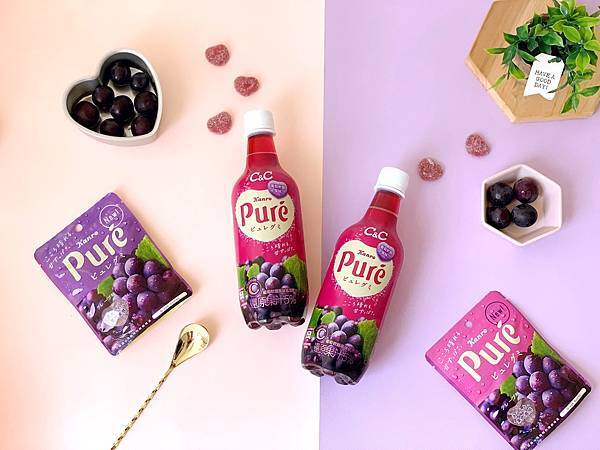 「Puré軟糖有獨特外層酸粉,『先酸後甜』帶給消費者無限驚喜;C&C清爽的氣泡感及維他命C,能滿足一日活力,也是人氣商品;綜觀產品特點,我們很高興這次的跨海合作,能打造出台日夢幻組合。」研發團隊在經過多次風味模擬、跨海與日本甘樂Kanro原廠進行確認,完美還原了Puré葡萄軟糖的經典風味,把酸甜比例拿捏得洽到好處,重現軟糖入口時外層酸粉的刺激酸感,再搭配清爽的碳酸氣泡,帶出葡萄的香甜滋味,就像Puré葡萄軟糖一樣,讓人一口就上癮!
