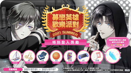 【募戀英雄歡樂派對・2021 SUMMER♡特別登入獎勵】