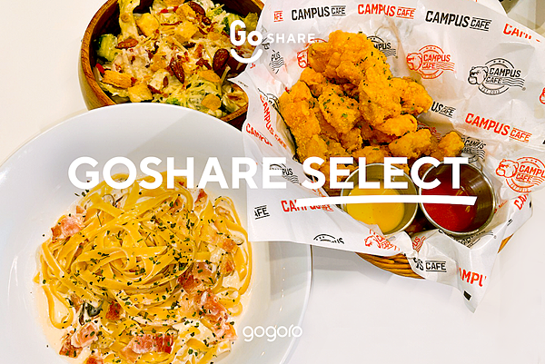 *7/1 至 7/29,GoShare 聯手 Campus Cafe、雙月食品社、富錦樹台菜香檳、一號島廚房,嚴選多種風格各異的鎮店料理,每週送上 20 份超飽足「GoShare Select 撫胃套餐」。