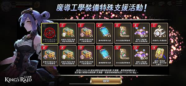 ▲「魔導工學裝備特殊支援簽到板」活動,連續14天每日登入遊戲,