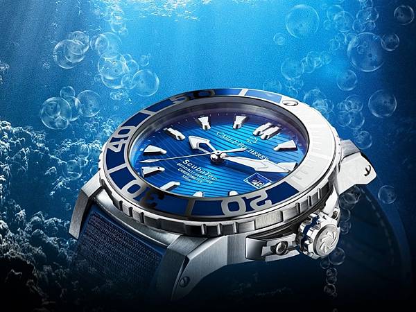 在錶殼側邊8 點鐘位置的自動排氦閥門,則可將滲入錶殼的壓縮氣體在潛水員上浮而開始膨脹時,順利排出錶殼,以避免錶鏡被強大的水壓撐破。此外,在黑暗中會發出藍色夜光的時標,使腕錶在大多數可見光都被過濾的漆黑深海下,仍然可以被清晰地閱讀,當然,寶齊萊柏拉維Patravi ScubaTec系列錶帶皆圍繞專業潛水需求研製與環保,織物錶帶部分使用100%由海洋打撈的PET塑料材質物料製成,不僅減少海洋污染的同時,日常佩戴都相當舒適耐用。腕錶內部搭載的CFB1950.1自動上鍊機芯經過瑞士官方天文台認證,確保走時精準無虞的同時,體現品牌自1888年起,追求內外「不凡極緻」的寶齊萊精神。