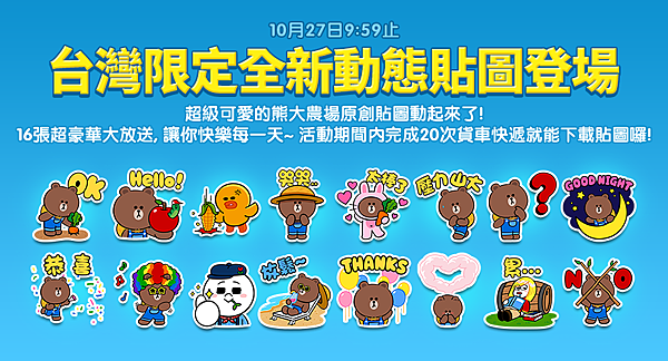 【熊大農場動態貼圖活動期間】:9月28日(二)10:00~10月27日(三) 09:59