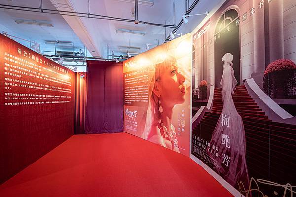 【梅艷芳ANITA】電影戲服展此次展出了梅艷芳四套不同時期的重要經典服裝,展間也依照服裝主題作了規劃,讓影歌迷能在現場找到心中與梅艷芳最美的回憶。展場以「出道前的梅艷芳」主題區揭幕,搭配香港街景招牌,重建梅艷芳從小與姊姊梅愛芳在舞台上演唱維生的歌舞廳,並展出依據她當年穿過的80年代歌廳秀服打造的閃亮戲服。展場第二區以「亞洲巨星歌后梅艷芳」為主題,展出片中根據梅艷芳在香港十大勁歌金曲頒獎典禮上演唱《似水流年》造型打造的白色西裝,這套具有時代意義的西裝不僅展現出梅艷芳獨特的霸氣,也看出她如何在保守的80年代引領潮流突破性別二元的窠臼,一步步走向亞洲巨星的地位。第三展區主題為「傳奇一生影后梅艷芳」,除了展出根據梅艷芳1987年來台以【胭脂扣】拿下金馬影后造型打造的黑絨禮服,整區也還原了梅艷芳與知己張國榮在電影中的煙床和佈景,讓影迷可以在此留念兩大香港巨星。第四展區「百變舞台天后梅艷芳」重現《烈燄紅唇》專輯的打歌服-前衛的黑色羽衣鉚釘裝,表現出恩師與造型師劉培基Eddie 如何將梅艷芳的不同面向以各式舞台華服完美呈現。展區最後是模擬2003年梅艷芳紅館告別演唱會舞台所打造的舞台區,展覽現場也將輪播梅艷芳「1997芳蹤乍現台北演唱實錄」及2003年「梅豔芳經典金曲演唱會」,讓梅迷們能在現場重溫梅艷芳舞台上最美麗的倩影,也見證她一生嫁給舞台與觀眾的決心。
