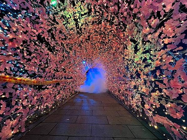 今年主燈聳立在礁溪溫泉廣場,超過一層樓高度的5米震撼「愛·守護者」光雕拱門,藉由一雙手比出「愛心」的形狀,夢幻控程流動式燈帶勾出外觀形狀,如夢如幻的視覺保證,而「愛·守護者」光雕拱門後方區域,擺設著獨特的炫彩光柱和互動式旋轉設計,彷彿演繹了對溫泉相愛的姿態,永恆留駐指間,讓燈光傳遞記憶的美好,也讓到此一遊的民眾留下的不止是靜態影像,期許透過動態錄影,展現更美好的礁溪燈花季。溫泉廣場旁的休息區也掛上美麗浪漫的桃花繽紛燈飾,增添賞心悅目之感,另一旁則是「粉紅銀杏葉溫泉光廊」,與粉嫩相呼應的彩幕,融合動態流星燈的效果,增加人行道的瞬間視覺美感。