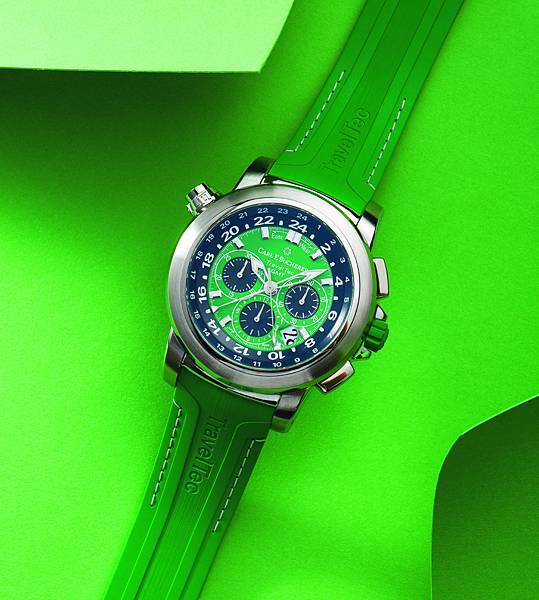 透過色彩鮮明的翠綠色系,賦予柏拉維三地時間計時碼錶春意四溢的盎然生氣,顛覆了頂級運動腕錶的用色想像,表現活力動感的時尚潮感;歸功於新穎別緻的高明度色彩,柏拉維三地時間系列,成為寶齊萊近幾年,在複雜功能運動腕錶領域的精彩之作,為許多關注品牌的頂尖消費者,留下深刻得印象,錶款運用46.6mm豪邁錶徑,賦予面盤留下更為寬廣的佈局空間,巧妙運用多層次的刻度外圈,大器吐露錶款搭載華麗功能的菁英風範。