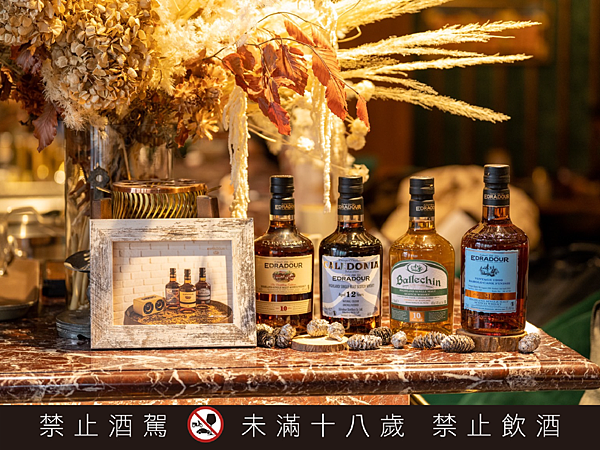 本次《艾德多爾迷你微醺餐酒會》選用了四款艾德多爾 (EDRADOUR) 的特色酒款,讓消費者一次享用波本、雪莉、泥煤、紅酒桶的風味。其中台灣市場首度推出的艾德多爾 21 年桶裝原酒 - 巴羅洛紅酒桶限量版,蒸餾於 1999 年,先在波本桶陳年 13 年,再入義大利頂級的巴羅洛紅酒桶中熟成 8 年的歲月。這款高年份原酒有著濃郁的太妃糖、蘋果、香草的香氣,及一絲絲老酒才有的獨特皂味,豐富層次與綿延不斷的尾韻,更是威士忌老饕心中的逸品。