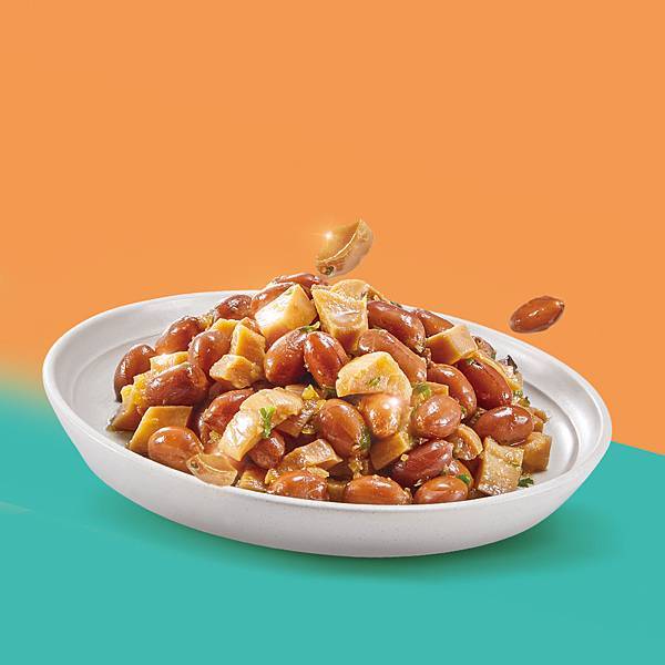嚴選雲林在地特選大顆花生,搭配Q彈多汁的杏鮑菇,在爆香過的蔥蒜油上澆淋獨門滷汁,悶浸熬煮後,入口剎那蔥蒜香氣撲鼻而來,隨之感受堆疊花生及Q彈杏鮑菇獨特、多層次的超涮嘴口感,讓人停不下來! |