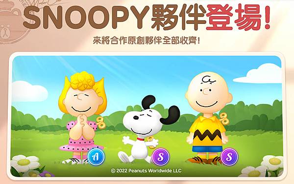為慶祝本次合作活動,「PEANUTS」的角色們將在《LINE 熊大上菜》中展現可愛魅力!「Snoopy」和「Charlie Brown」等5種角色將化身夥伴來陪伴玩家挑戰遊戲喔!