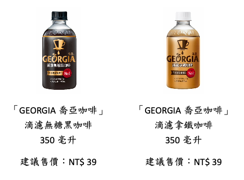 - *全家便利商店FamilyMart:即日起至3/8購買任一口味「GEORGIA喬亞咖啡」可享2件$55元優惠價;3/9至4/5購買「GEORGIA喬亞咖啡」搭配全家便利商店$55元、$59元指定早餐,即可享有$79滿足餐優惠價(原價$94元起)。
