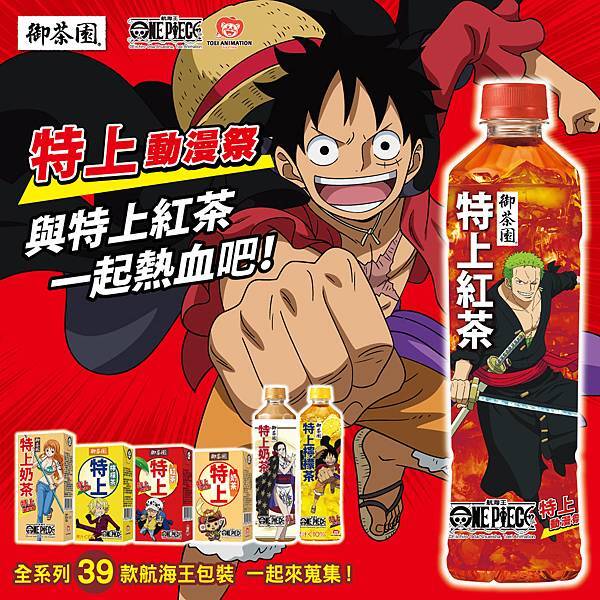 海賊迷看過來!2022『特上動漫祭』重磅攜手日本超人氣動漫「航海王」!特上紅茶、奶茶、檸檬茶獨家推出39款航海王包裝,超多人氣角色等你來蒐集。不只是航海王包裝,活動期間還能抽「Nintendo Switch (OLED款式)+海賊無雙4遊戲組」。超豐富的特上動漫祭,快和特上紅茶一起追動漫,好喝特開心!