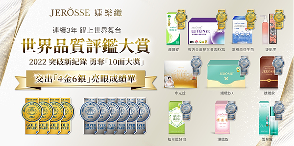 婕樂纖是近年來在美容纖體市場快速崛起的高人氣品牌,近日更奪下2022年比利時世界品質標章4金6銀的優秀成績,(共10支產品獲獎),其獲獎產品為「健字號纖飄錠」「高機能益生菌」、「複方金盞花葉黃素EX飲」、「婕肌零洗卸凝膠」,「水光錠」、「纖纖輕鬆飲X」、「爆纖錠」、「輕卡肽纖飲」、「植萃纖酵宿」、「雪聚露雙效導入精華」,得獎產品跨足體重管理、美容保養、健康機能,全方位守護國人健康與美麗。