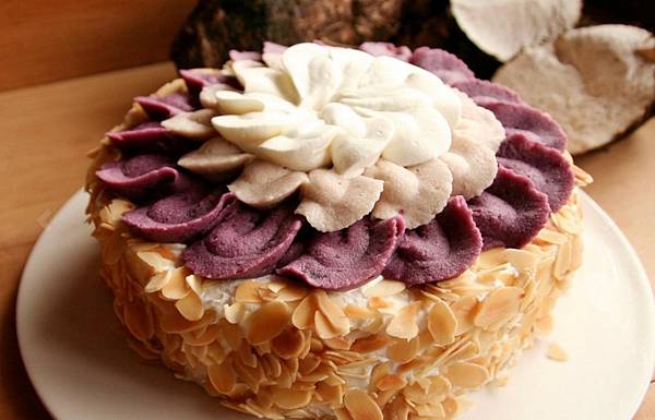 從源頭把關台灣在地值得信賴的食農生態,沐甄豆Caremully紫芋香米優雅裙襬米蛋糕,100%無麩質全米蛋糕,選用桃園3號香米、紫心地瓜、大甲檳榔芋、法國鐵塔牌鮮奶油、美國NBA奶油乳酪、日本海樂糖、杏仁片,絕無任何添加物,層層綿延一起細細品嘗香米清爽的芋香與奶蛋香,7吋建議售價1,190,冷凍保存30天,蛋奶素可食。