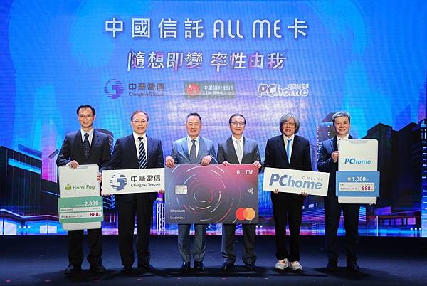 中國信託商業銀行(簡稱「中信銀行」)今(5)日宣布與中華電信、PChome網路家庭集團聯名發行「中國信託ALL ME卡」,三強結盟首創金融業跨平臺即時轉點(「中信點」轉換成Hami Point、P幣)功能,主打累點快、靈活兌、通路廣等三大優勢,刷卡點數回饋可立即累積及兌換。活動期間更推出電信、電商、四大超商、生活消費、繳費等刷卡優惠,最高可享12%點數回饋,提供廣大卡友隨想即變、率性由我的新價值主張。