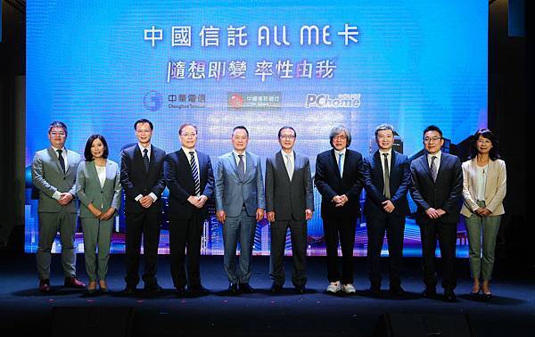中國信託銀行今日舉行「中國信託ALL ME卡」上市記者會,中信銀行董事長利明献、中信銀行總經理陳佳文、中華電信董事長謝繼茂、中華電信個人家庭分公司總經理蘇添財、PChome網路家庭集團董事長詹宏志及網家數據科技董事韓昆舉一同出席共襄盛舉。