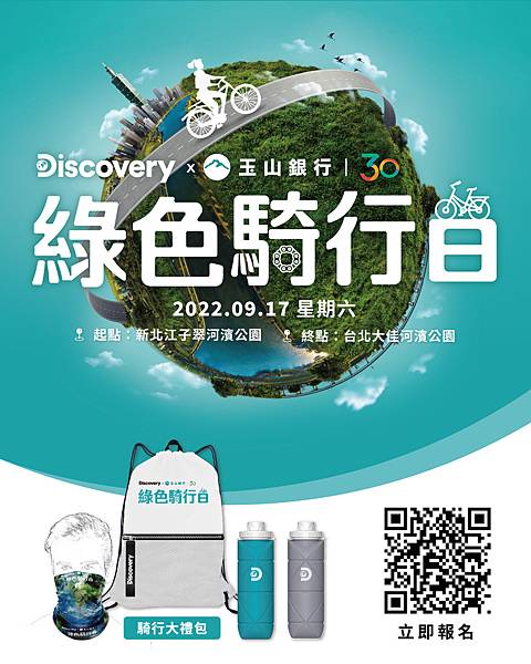 長期推動一件好事救地球的 Discovery頻道繼創下最多人淨海的金氏世界紀錄到號召全民無肉生活21天的減碳挑戰之後,要在今年9月17日攜手綠色企業玉山銀行共同舉辦「綠色騎行日」,號召千人騎行,一起為地球減碳!
