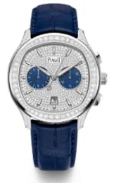 PIAGET Polo系列18K白金自動上鍊高級珠寶計時碼錶及伯爵藍日期顯示自動上鍊精鋼腕錶 |
