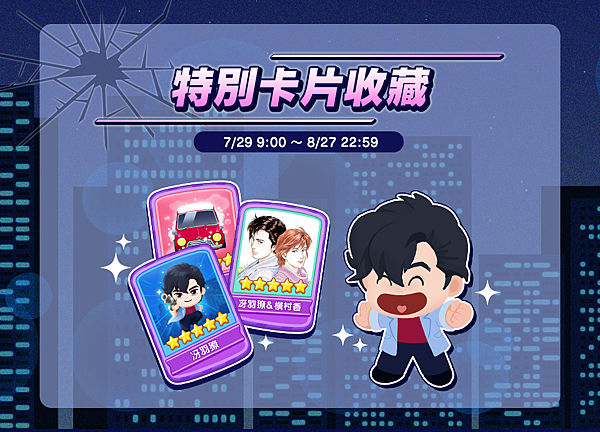 活動期間推出『城市獵人』的限定造型!只要購買組合包、完成特別書本或卡片收藏就有機會獲得,總計3個角色5種不同造型等你來收藏。