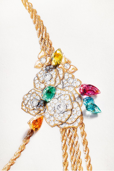 PIAGET Rose系列帕拉伊巴碧璽及彩色寶石鑲鑽長項鍊