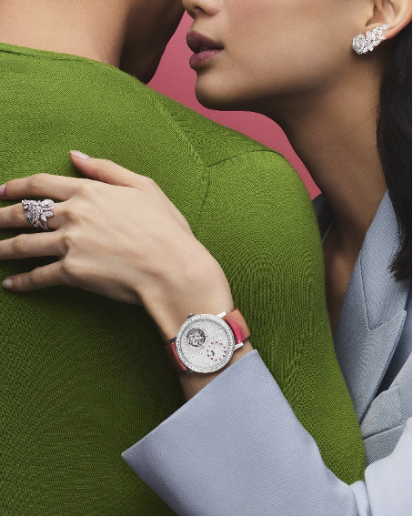 從頸間到指間,從耳間至手腕。此次PIAGET Rose系列新品不僅盡顯璀璨風華,也進入分秒必爭的境地。透過為Altiplano系列增添一款新作來呈現其卓絕非凡的製錶世界。這款腕錶在花卉鎸刻中綻放美感,是伯爵創新與設計的終極體現。令人矚目的玫瑰花錶帶耗時兩年多的悉心研發,採用世界上最精緻纖弱的材料之一製成:真實的花瓣。適合喜歡透過腕上佩戴品來展現風格、歡趣和駕馭精神的人士。
