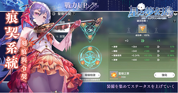 「痕契系統」是一個全新的強化介面,玩家可以透過副本「火劍之路」來得到「刻痕」與「令契」兩種素材,並於「靈魂命痕」的介面中,進行鑲嵌、共鳴、重塑與分解,依照職業需求,搭配適合的刻痕,把戰力提升到最大化!
