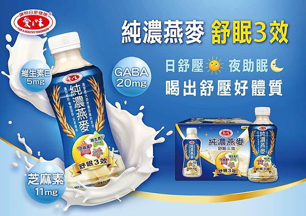 愛之味食品科技全新推出保健機能飲「純濃燕麥-舒眠三效」,為您量身打造白天可舒壓、夜晚可助眠的天然保健飲品。