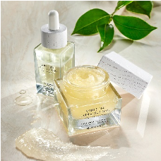 附註:1 Epigallocatechin Gallate Glucoside,是白茶中的一種活性分子。2 依據與純 EGCG相比的穩定性資料。3 依據體外研究。4「潔淨」係指我們精心挑選對肌膚是溫和的優質有效天然成分,注重產品的效益及使用感覺。 5自我認為是敏感性肌膚。6指眼部保養產品。