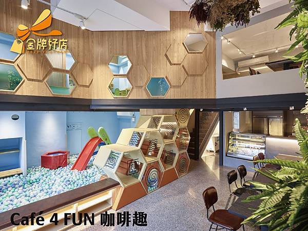 而韓系咖啡廳的建築風格在台灣也颳起一陣旋風,「Cafe 4 fun 咖啡趣」在工業風中帶點童趣,加上玩具的點綴,結合休閒、趣味和親子同樂舒適的愉快用餐環境就此誕生了!有別於一般親子餐廳,對於兒童餐往往只提供油炸食物和簡單方便快速的餐點,這裡打破親子餐廳的既定印象,致力研發健康又美味的飲食提供給各式需求的顧客。超水準的餐點,滿足了大人小孩的各種需求。除了細心照顧顧客的五臟廟,這裡還提供了獨特的遊戲環境,像是:六角蜂巢遊戲屋,粉嫩可愛的球池,豐富玩具的小廚房等等,這裡簡直是孩子們的遊戲天堂!