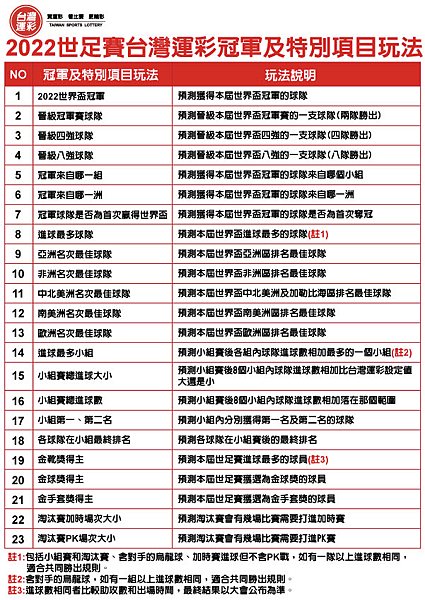 圖【2022世足賽台灣運彩冠軍及特別項目玩法】
