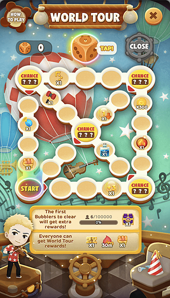 在活動期間內,只要通過一般關卡,即可獲得擲骰子的機會。在世界之旅活動頁面中擲骰子前進並完成環遊世界一周,即可獲得活動獎勵!