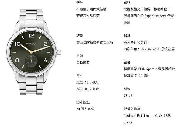 全球限量28只的Club Sport Automatik Limited Edition – Green大西門限定款,建議售價為NTD108,000,目前已經全數交付大西門鐘錶,歡迎喜歡NOMOS的消費者,前往位於西門町的大西門鐘錶參觀賞鑑。