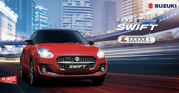 SWIFT以動感設計與嶄新科技,再次奪下車訊風雲獎「最佳進口小型車」的肯定。搭載HYBRID輕油電科技結合了12V ISG整合式啟動馬達發電機與全新1.2L DUALJET引擎,展現平均油耗 22.3km/L 的優異一級能源效率,並全面配備 SUZUKI Safety Support,以 ACC 主動式車距巡航、DSBS 雙感知器煞車輔助、BSM 車側盲點偵測等八項主動式安全科技一路守護車主的行車安全。內裝採運動化環艙設計,搭配整合式跑格儀表板,觸目所及盡顯熱血氣息。SWIFT,讓你自在駕馭想要的型。