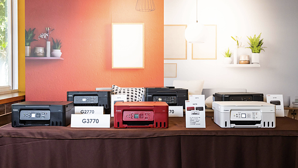 Canon推出全新原廠大供墨印表機PIXMA G4770、G3770、G2770、G1737,新的外型設計具備時尚感,G3770並有紅白兩色可供選擇,使用者可自行更換維護墨匣(廢墨棉),印表機維護簡單輕鬆,同時將操作介面改至機體前方,提升使用便利性;商用MAXIFY GX3070、GX4070,新增後方平板托盤進紙方式,可支援最厚 0.7mm 紙板列印,超高印量墨水,經濟模式下黑色墨水列印量為 9,000 頁,彩色墨水列印量更高達 21,000 頁,幫企業省下列印成本。