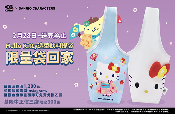 基隆中正信三店限定!「Hello Kitty 造型飲料提袋」2月28日起正式限量開換!