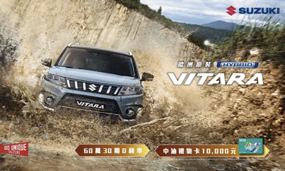 TAIWAN SUZUKI延續新春喜氣,就是要讓您優惠享不停!為了讓車主在新的一年有好的開始,TAIWAN SUZUKI推出各車款多重好禮優惠:2023年起SUZUKI全車系HYBRID車款除可領政府汰舊換新補助金之外,還可再享空汙補助及減碳獎勵金7000元;VITARA及SWIFT車系領牌就贈「中油禮物卡10,000元」;IGNIS可再享丙式車體險;IGNIS及SWIFT車系購車享「首年日付60元專案」, VITARA車款購車享「60萬30期0利率」;全車系領牌可享『代車險』及『不限里程道路救援』。