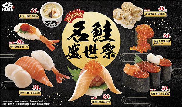 藏壽司「名鮭盛世祭」初春驚喜奉上!鮭魚控最愛「鮭魚肚贅澤海鮮塔」、鮮甜海味「魚卵贅澤三貫軍艦」,人氣名物「豪華三鮮」同步推薦!
