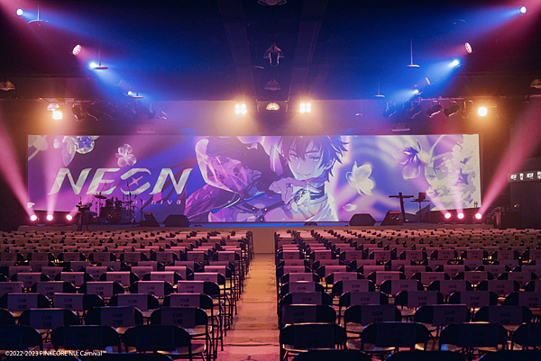 《新世界狂歡》自 2022 年初上市以來便受到全球廣大玩家的喜愛。為慶祝遊戲上市一週年,官方盛大舉辦首場 LIVE 活動「Neon Carnival」,本次邀請到台灣 ACG 樂團「Neon Hops」於活動上半場帶來遊戲主題曲 Bright Purity、遊戲內角色奧利文、八雲、布儡組成的偶像團體出道曲「Summer Dream」等多首經典樂曲,帶領玩家們回顧這一年來與《新世界狂歡》共度的美好回憶。而活動在正式開演前,許多熱情的玩家早早便抵達現場,大排長龍的隊伍都是為了入手本次活動的限定商品。