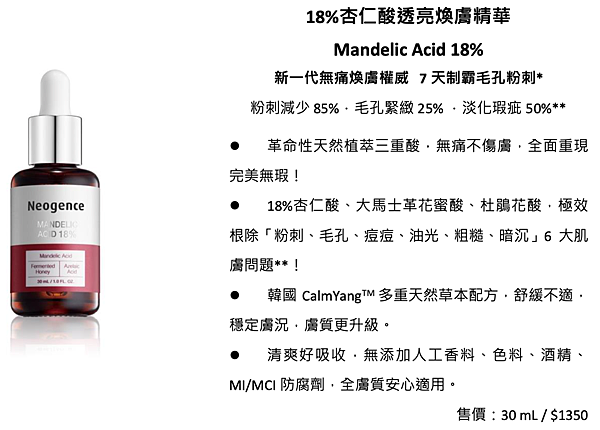 Neogence霓淨思 杏仁酸煥膚無瑕系列: