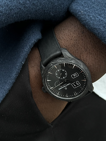 錶帶:「碳」紋理混合橡膠錶帶,設有快速拆卸系統