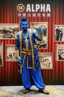 ▲ 主題春酒-集團創辦人賴三禹期許自己,能像神燈般實現員工們的願望!(圖/阿爾法餐飲集團提供)