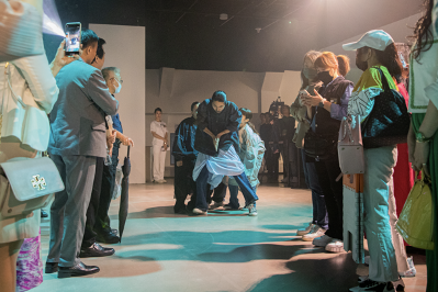 開幕記者會當天,集團邀請來自美國的舞團 save as draft,以七分鐘的即興舞蹈,帶領我們感受生命三元素:陽光、空氣、水,體驗返回生命原初的狀態,現場近距離與舞者接觸,感受極大張力與震撼。