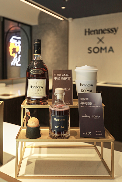 軒尼詩與台北人氣排隊手搖飲SOMA特調飲品領軍推出限定奢華奶茶款「軒尼詩V.S.O.P干邑茶歐雷」特調,嚴選斯里蘭卡、印度莊園等級等三種茶葉,汲取三種紅茶的不同特性,創造出口感濃郁的基底茶,格外襯托出奶茶的滑順風味。搭配上香醇豐盈的軒尼詩V.S.O.P完美融合,透過頂級軒尼詩V.S.O.P獨有的清新水果香氣及橡木桶烘烤淡香,使柔滑平衡的口感加成:一口即能品嚐到茶香、奶香、酒香的三重享受,層次豐富,創作出難以拒絕的大人系奶茶,必定擄獲每一位酒迷及奶茶控的芳心。