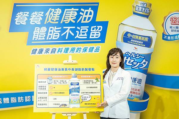 記者會現場也邀請專家營養師許思瑜來分享了健康用油的觀念:一瓶好的健康油應該具備多種健康優勢,除了要有必需脂肪酸(ω-3、ω-6)、耐高溫料理(發煙點200度C以上)等特點,還要有不易形成體脂肪的健康優勢,才能算是一瓶好油!「綺麗健康油」是以中鏈脂肪酸油,利用酵素結合穩定性高的芥花油,完美保留中鏈脂肪酸的優點:好吸收、代謝快、不易形成體脂肪,同時也有長鏈脂肪酸裡的必需脂肪酸,以及能夠高溫料理兩大優點。最後鄭凱云也暖心的提醒「體脂健康不僅來自保健品,更源於餐桌上的健康佳餚」,她鼓勵從日常飲食中尋找真正的健康,選擇不易形成體脂肪的「綺麗健康油」來照顧家人的體脂健康。