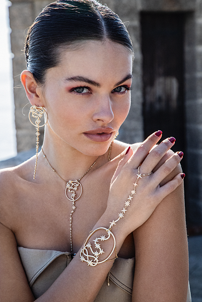 MÉTÉORITES系列-APM Monaco標誌性的代表作,戴上全新的金色星空完美演繹這個夏日假期。全新的六芒星設計包括了個性十足的吊墜耳環和精緻工藝打造的掌環。
